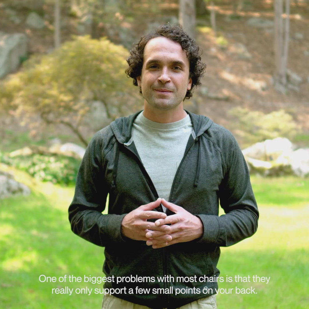 Traditional chair design violates all three. A single backrest manages all forces alone. Movement is restricted in the name of support. Pressure concentrates at a few contact points, making fatigue inevitable.
