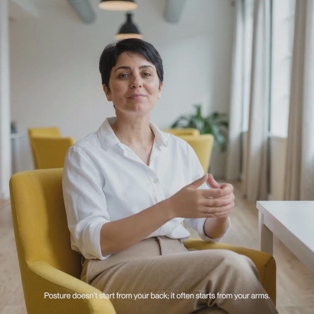 The arms carry a significant share of upper-body weight. When unsupported or misaligned, that load shifts to the shoulders, neck, and upper back, leading to elevated shoulders, forward slumping, and chronic cervical tension over time.
